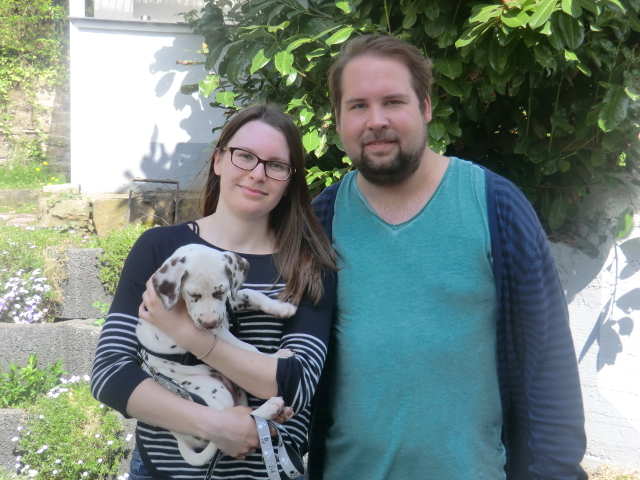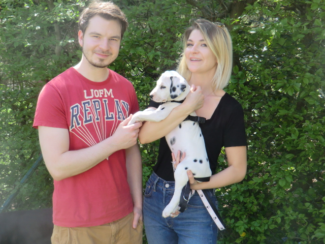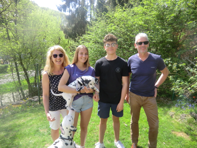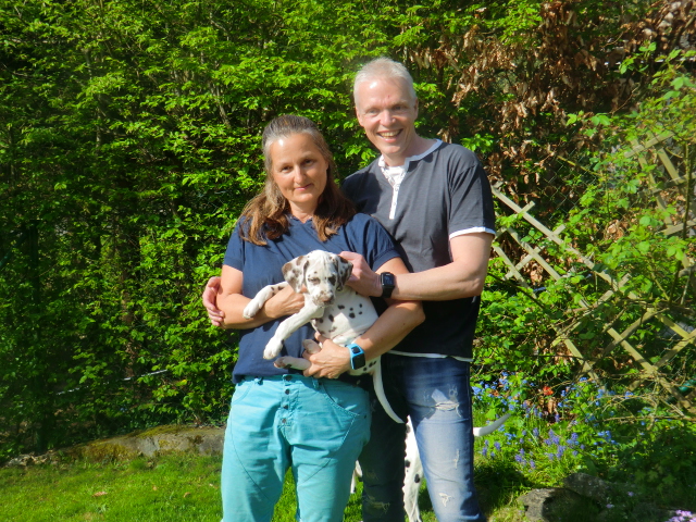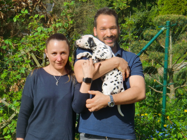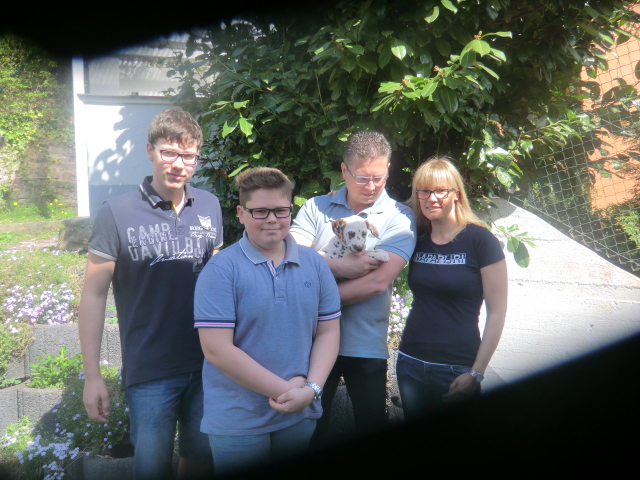 Nach dem Tod ihres geliebten Dalmatiners war für Kirsten, Jörg und ihre Kinder schnell klar das man nicht ohne Punktehund bleiben möchte. Wunschgemäß erblickte ein weiß/braun gefleckter Rüde das Licht der Welt und unser Herr Blau eroberte alle Herzen im Sturm! Er hört jetzt auf den Namen Günni und bringt wieder ordentlich Leben ins Haus!