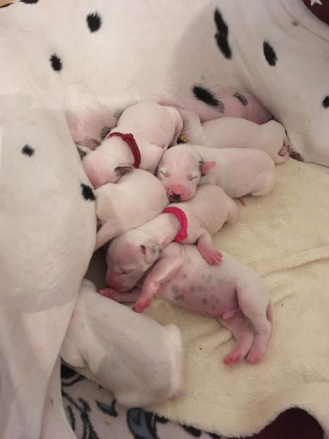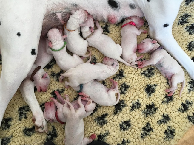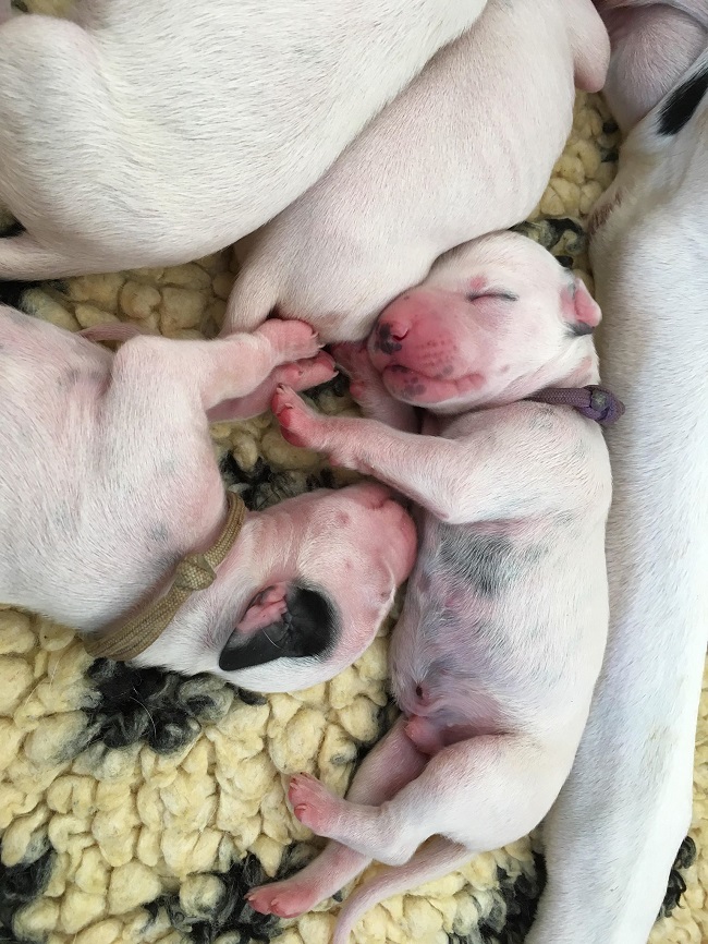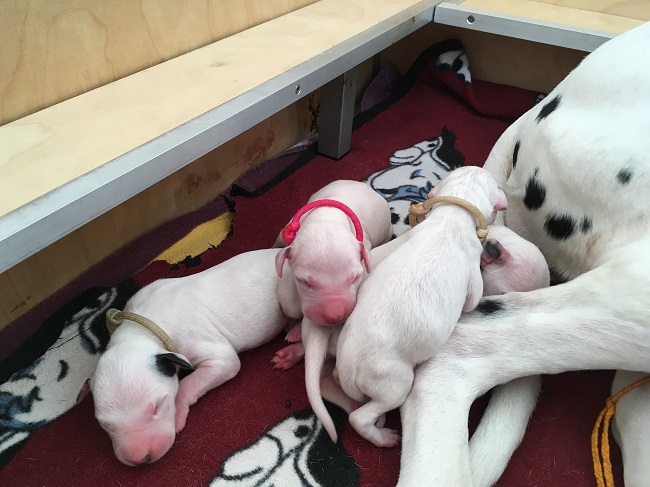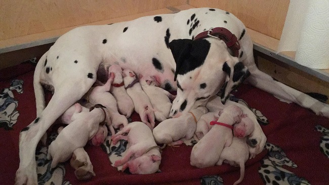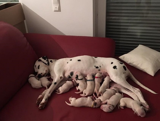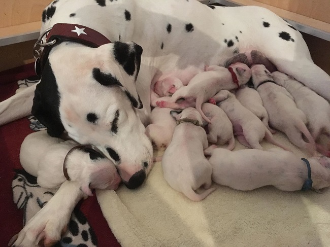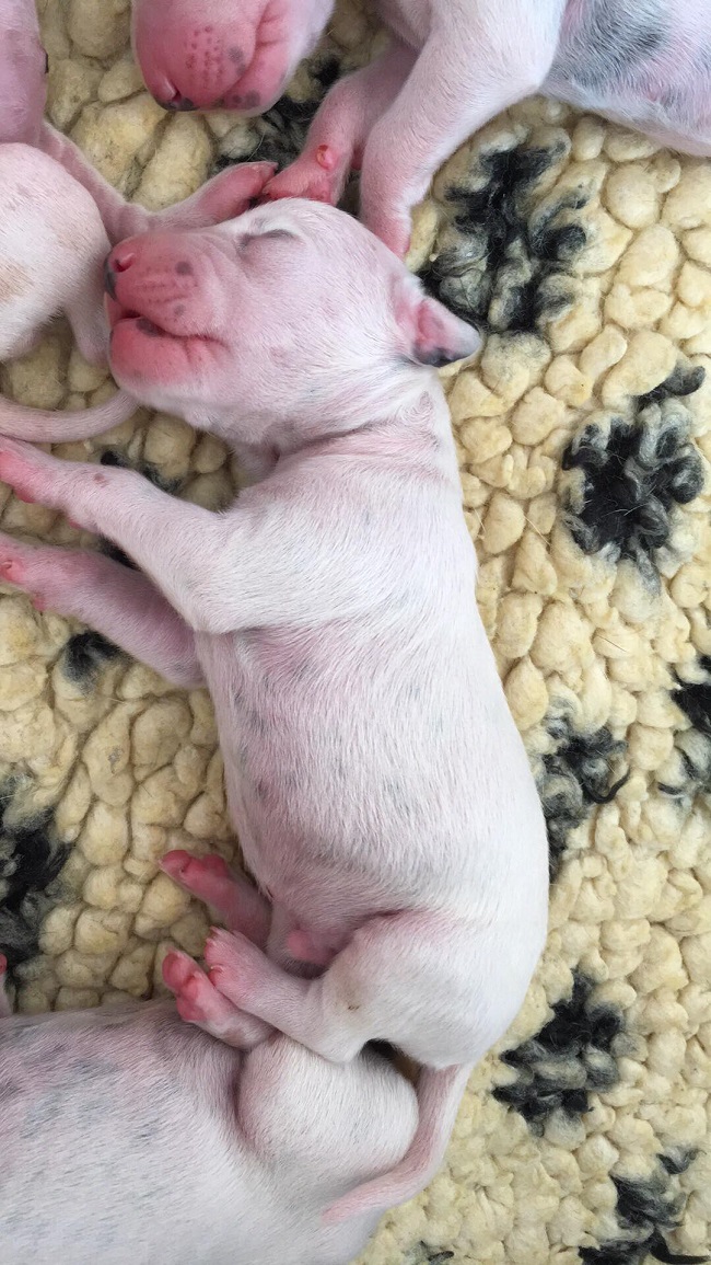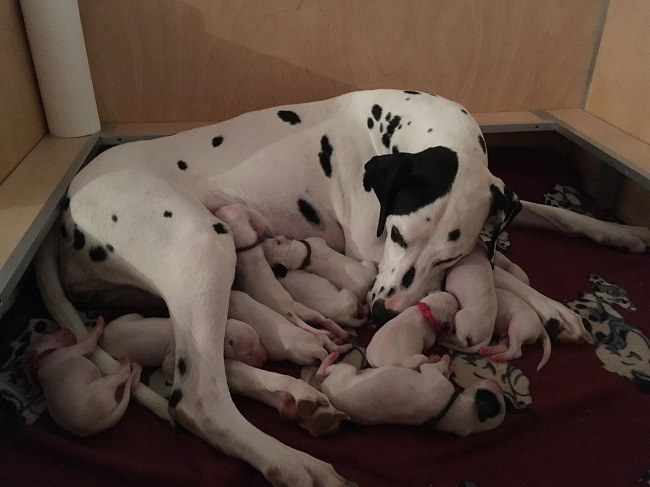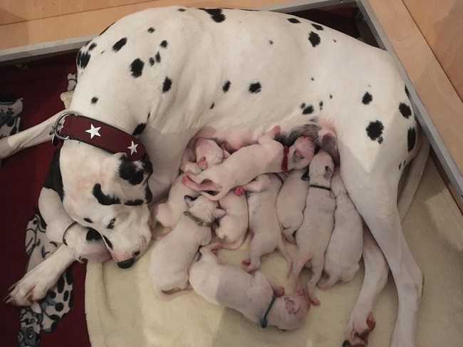 Unser Bild der Woche: Da schläft das Ziehfrauchen die erste Nacht wieder im eigenen Bett und da ergreift Easy die Gelegenheit, und ist spontan mit all ihren Welpen in der Nacht selbständig auf die Couch umgezogen. Meinen Blick hätte ich gerne gesehen als ich morgens die leere Wurfkiste gesehen habe. ;-)