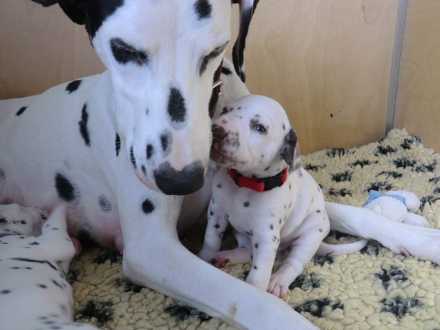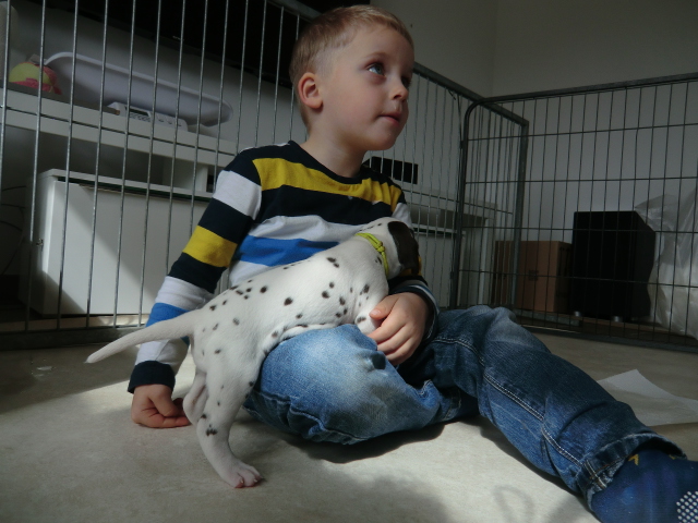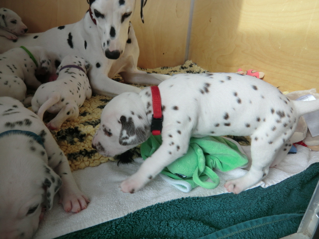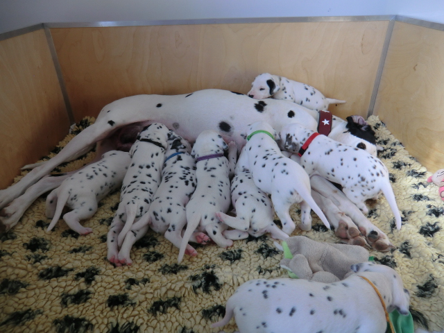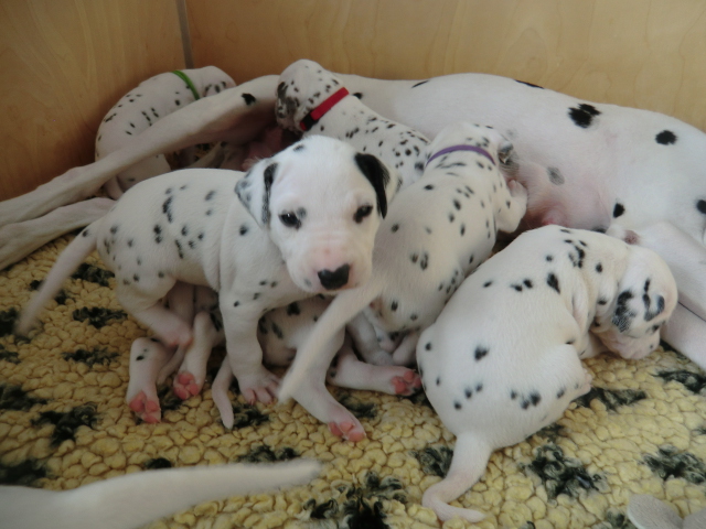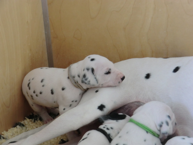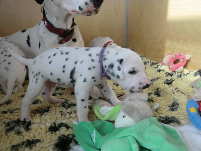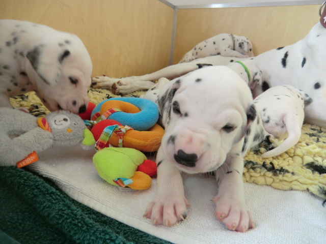 Zum Ende der 3. Woche haben wir tolle Nachrichten! ALLE Welpen hören und haben dunkle Augen! Auch nehmen alle fleißig an Gewicht zu, Mama Easy macht ihre Sache einfach Prima und ist eine sehr führsorgliche Mama!