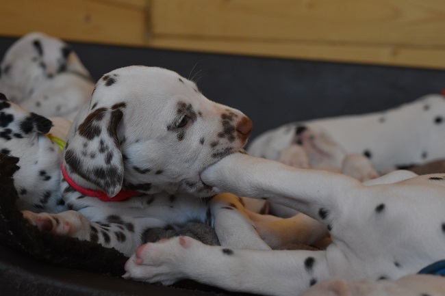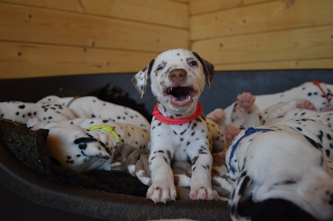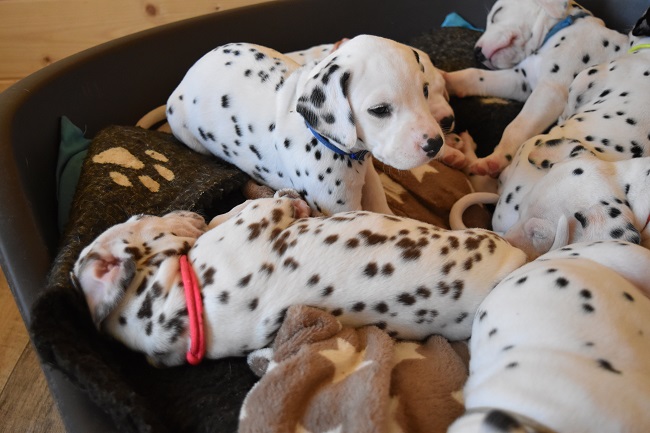 5. Woche _____________________________________ In der 5. Woche ging es für die Welpen das erste mal nach draußen in den Garten! Wie erwartet fanden die I-chen die Ausflüge nach draußen super spannend und erkundeten neugierig ihr neues Domizil! :-)