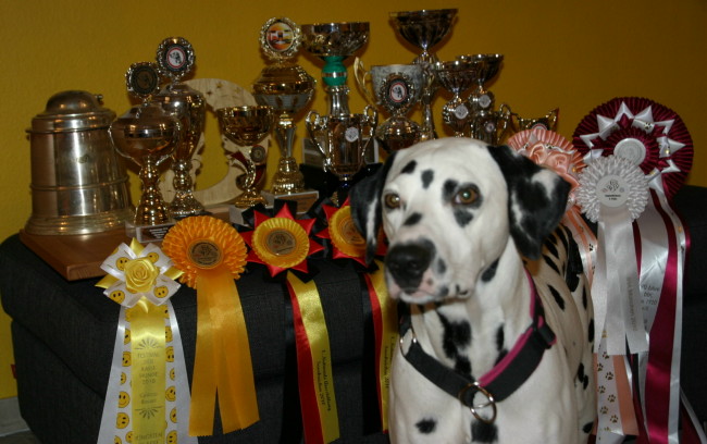 Elena muss mit 24 Monaten als jüngste in der Offenen Klasse starten, gewinnt diese gegen ihre starke Konkurrenz mit Vorzüglich 1, wird unter den strengen Augen des Dalmatinerspezialrichters Marco Schadegg Tagesbeste Hündin, erhält ihr 2. CACIB, den Titel "Saarlandsiegerin 2011" und gewinnt auch noch gegen den Tagesbesten Rüden aus der Championklasse und wird BOB!!!