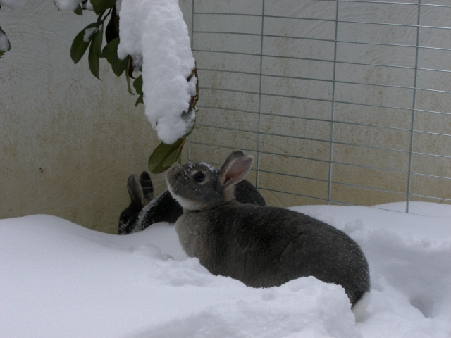Unsere Zwerghasen - Mia und Finja Die kleine süße Finja ist jetzt ein Jahr alt und die Tochter von Mia Unsere Mia mit ihrem dicken Winterfell, sie ist jetzt schon 2,5 Jahre Im Schnee fühlen sie sich ganz besonders wohl |