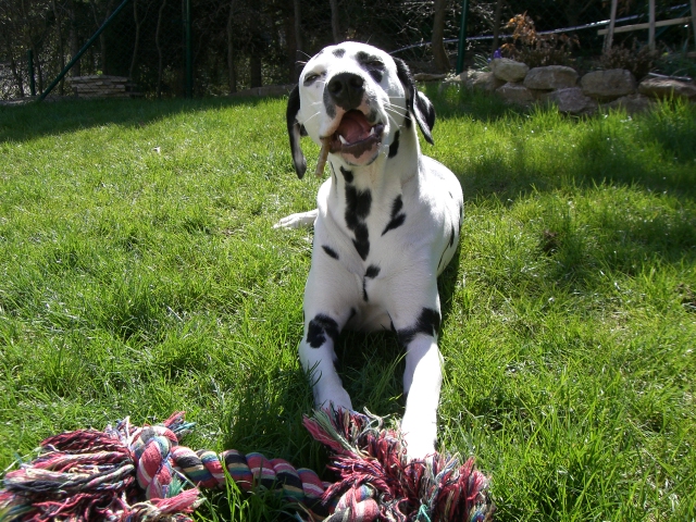 Mmmh, leckere Rinderhautkaustange!!! Die mag ich am liebsten....