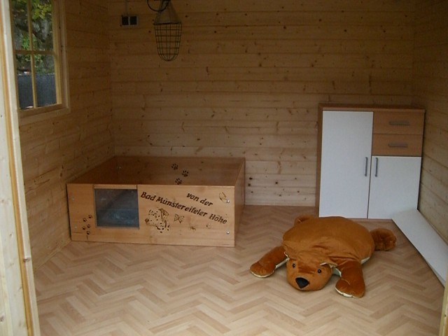 Die Zeit scheint wie im Flug zu vergehen und soviel Zeit bleibt dann auch nicht mehr bis nächstes Jahr. Alle Vorbereitungen sind getroffen: die Wurfkiste steht bereit, das Welpenhaus ist Fertig, der Spielplatz mit vielen unterschiedlichen Spielgeräten wartet auf seine Eröffnung und der Welpenauslauf ist hoffentlich Ausbruchssicher!!! In kürze wird auch die Zuchtstättenabnahme durchgeführt. Für den Welpenspielplatz haben wir ganz gezielt verschiedene Geräte besorgt, die vor allem die Motorik und das Selbstbewusstsein der Welpen fördern. Die Hauptspielsachen unserer Welpen werden natürlich wir sein, und darauf freuen wir uns ganz besonders!