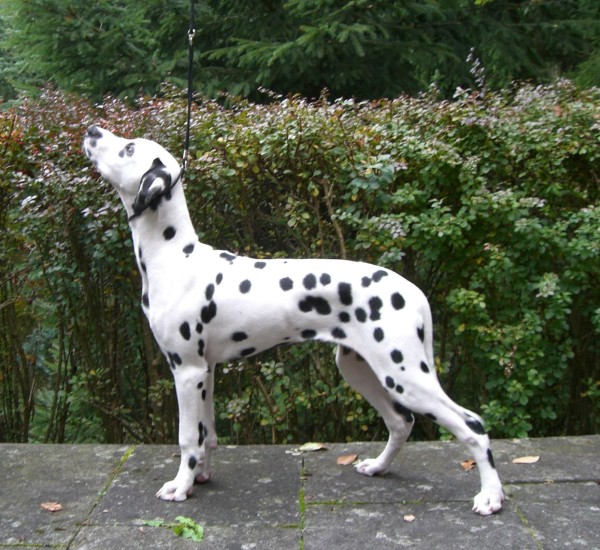 2 ½ J., vorzügliche Proportionen, Typ, ausdrucksvoller Kopf, gutes Pigment, viele Tupfen, leider ineinanderlaufend, vorz. Rückenlinie, vorz. Stellung der vor- und Hinterhand, freier Bewegungsablauf, angenehmes Verhalten, s.g. präsentiert. (Bewertung: Vorzüglich)