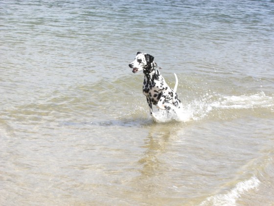 Unser Urlaub auf Sylt war sehr schön, aber leider viel zu kurz. Wir hatten größtenteils super sonniges Wetter und nur wenig Regen. Alina hat die Zeit ganz besonders genossen. Jeden Tag am Strand Bällchen spielen, große Löcher graben, viele andere Hunde kennen lernen, Fahrradfahren, Joggen und Wandern. Ganz besonders stolz sind wir auf Alina, weil sie das erstemal im Meer schwimmen war. Letztes Jahr hatte sie sich nicht getraut. Jetzt liegt sie rundum zufrieden in ihrem Körbchen und erholt sich von dem "Urlaub".