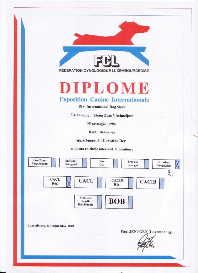 Formwertnote: Excellent (Vorzüglich) 2; CACL Res.