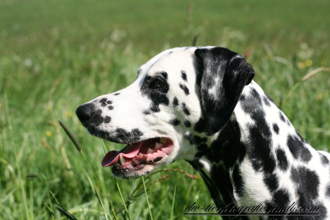 Warum gerade Duke? Besonders wichtig war es mir einen Rüden zu wählen, der genau wie Alina keinerlei Hautprobleme oder sonstige Erkrankungen im „Gepäck“ hat, auch die Ahnen gesund sind und der Umgang mit anderen Hunden - Rüden wie Hündinnen - vollkommen unproblematisch ist. Ich bin mir sicher mit Duke eine sehr Gute Wahl für Alina getroffen zu haben und alle die Kriterien die mir besonders am Herzen liegen wie Gesundheit, Wesenfestigkeit, Familienfreundlichkeit und letztendlich natürlich auch ein minimales Taubheitsrisiko umsetzen zu können.