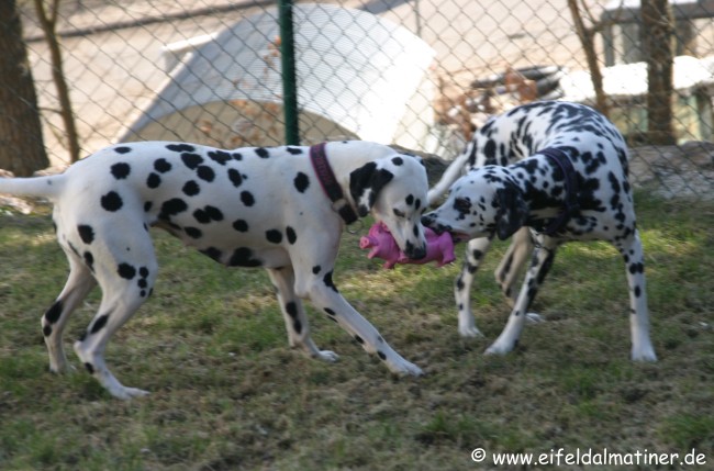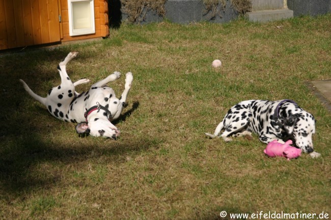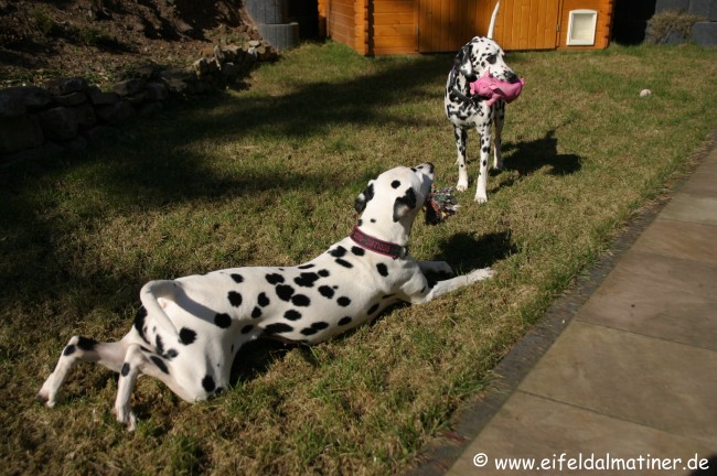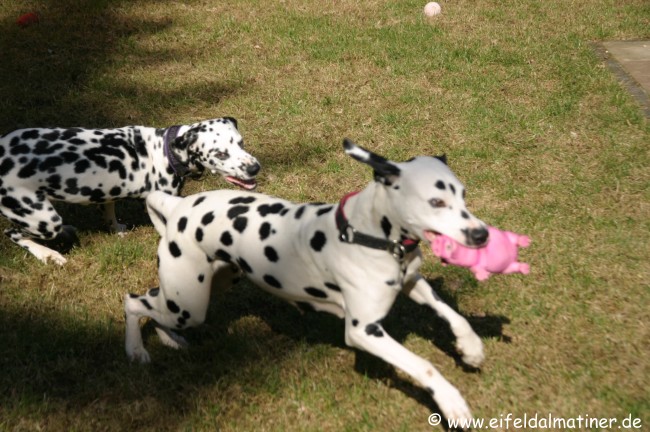 Alina gibt sich mit dem Ball zufrieden. So ist das mit den "kleinen", tanzen einem immer auf der Nase herum!