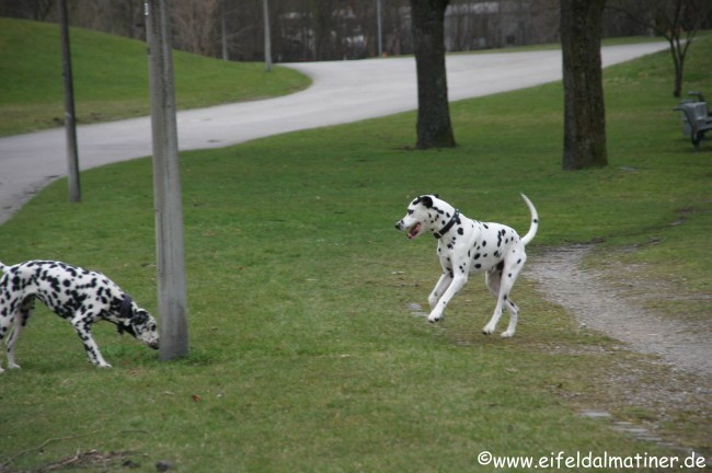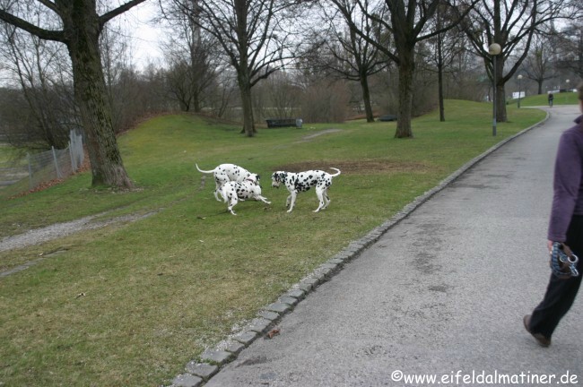 Das schöne an der IHA München ist das weitläufige Gelände um die Olympiahalle, wo sich die Hunde ordentlich austoben können!!