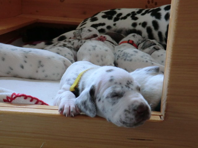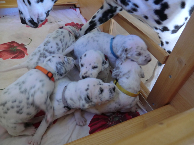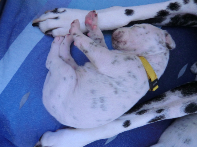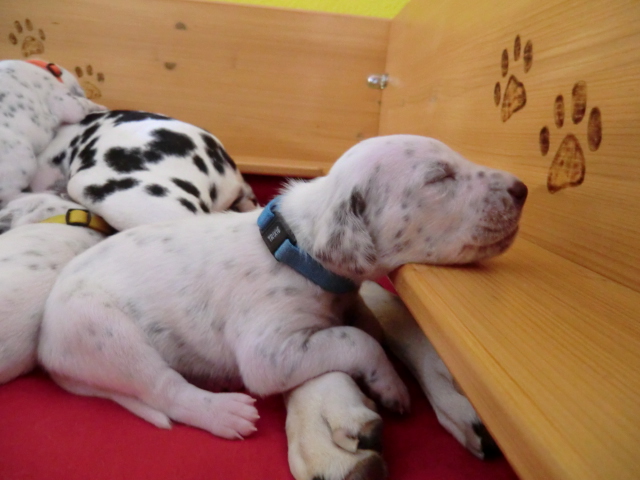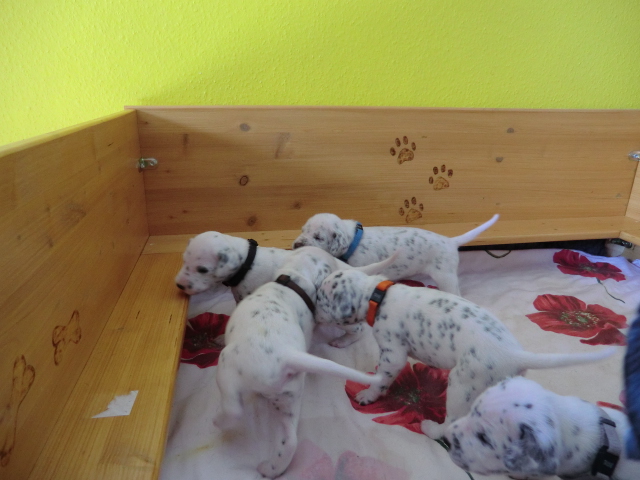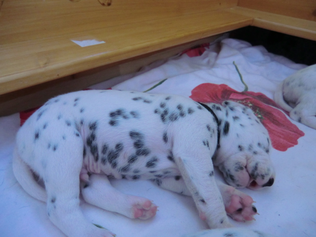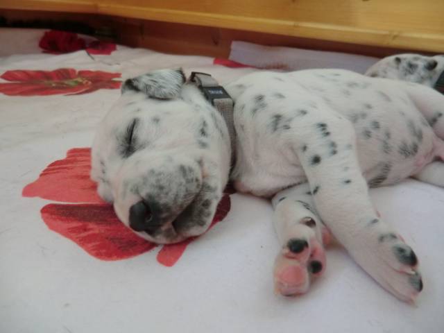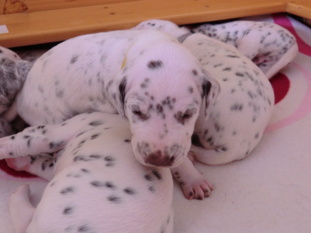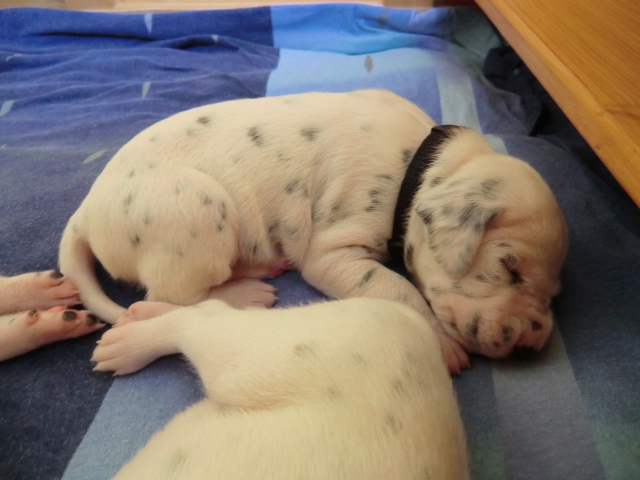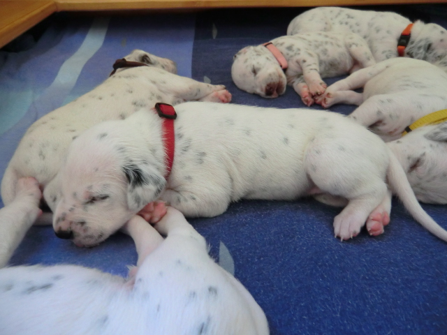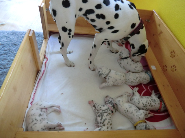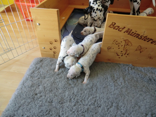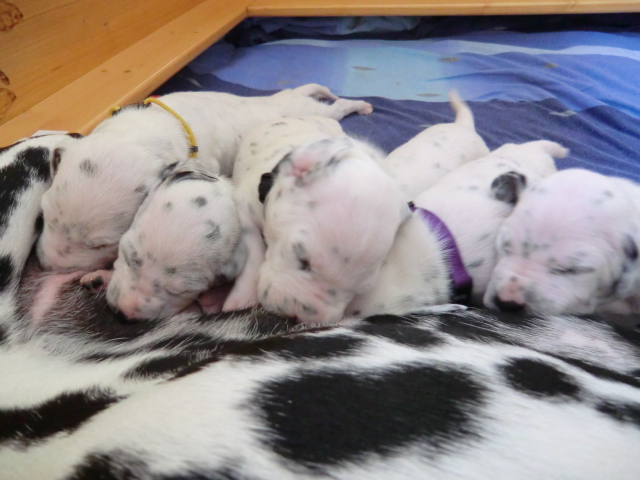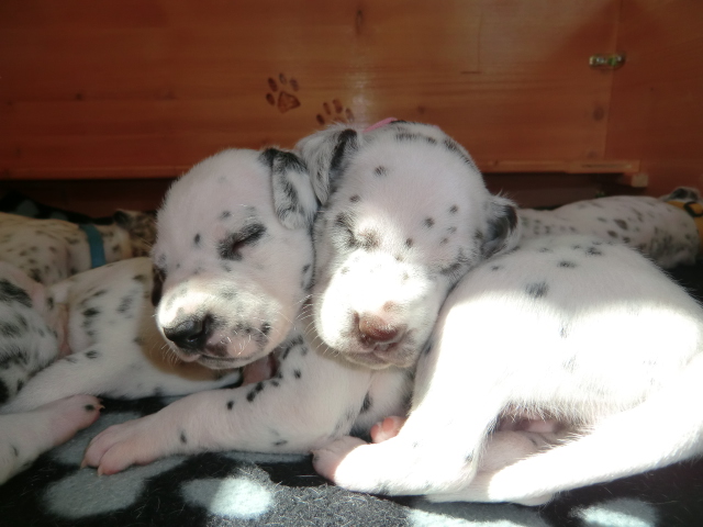 Mit der Entwicklung der kleinen bin ich absolut zufrieden! Mittlerweile sehen sie schon aus wie richtige (Mini) Dalmatiner! Auch werden schon die ersten Geschäfte eigenständig und ohne Mamas Hilfe verrichtet. Waschmaschine und Trockner laufen zur Zeit um die Wette ;-)