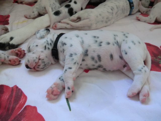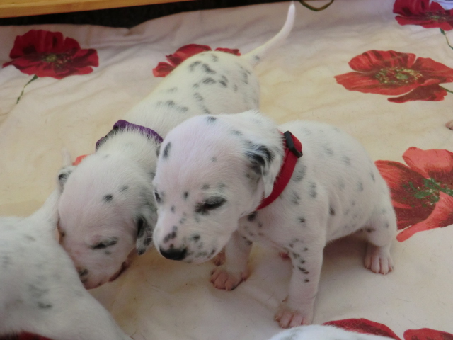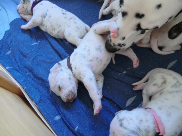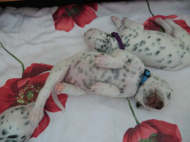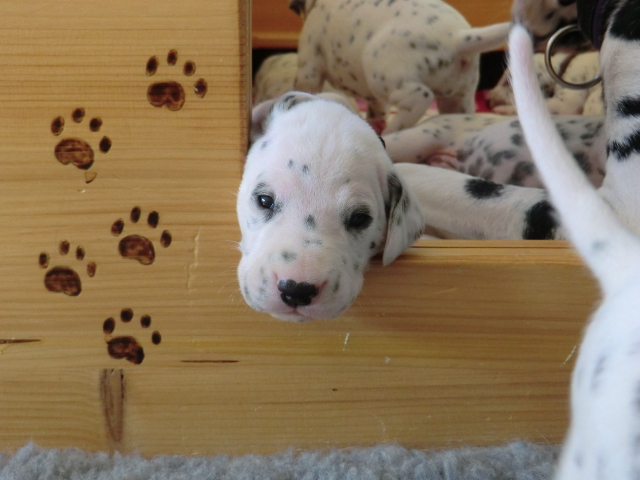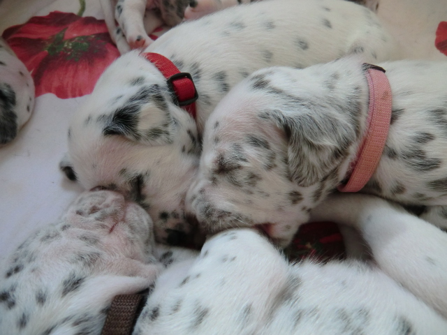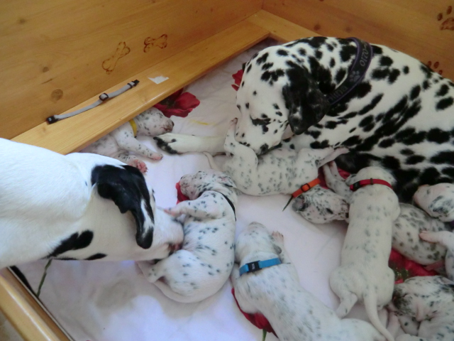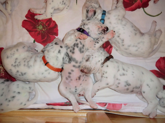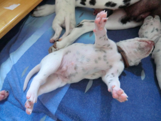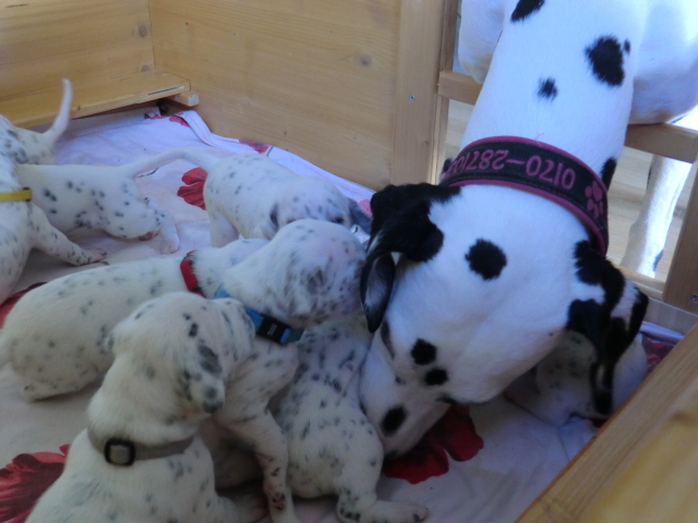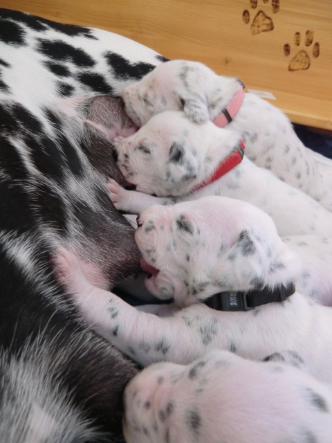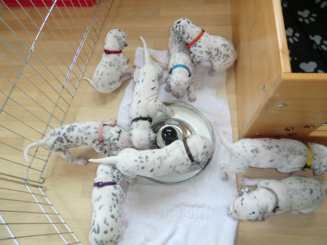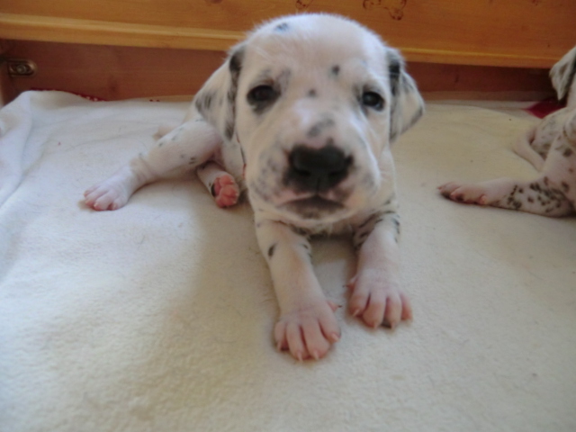 Mit der Entwicklung der kleinen bin ich absolut zufrieden! Mittlerweile sehen sie schon aus wie richtige (Mini) Dalmatiner! Auch werden schon die ersten Geschäfte eigenständig und ohne Mamas Hilfe verrichtet. Waschmaschine und Trockner laufen zur Zeit um die Wette ;-)
