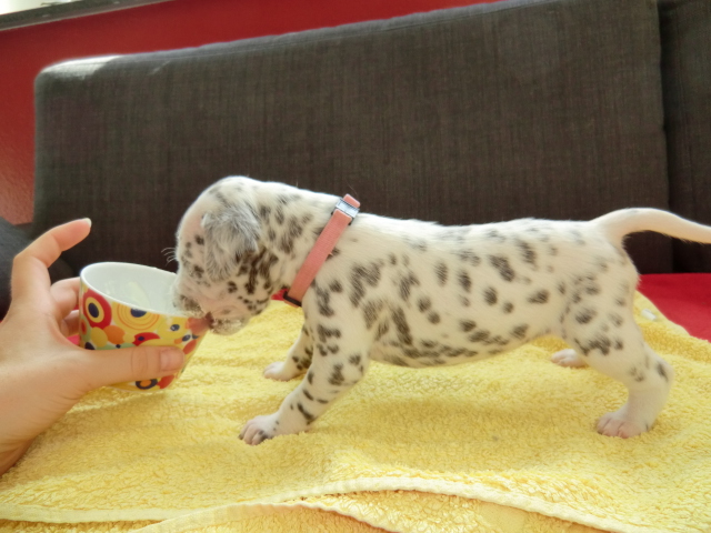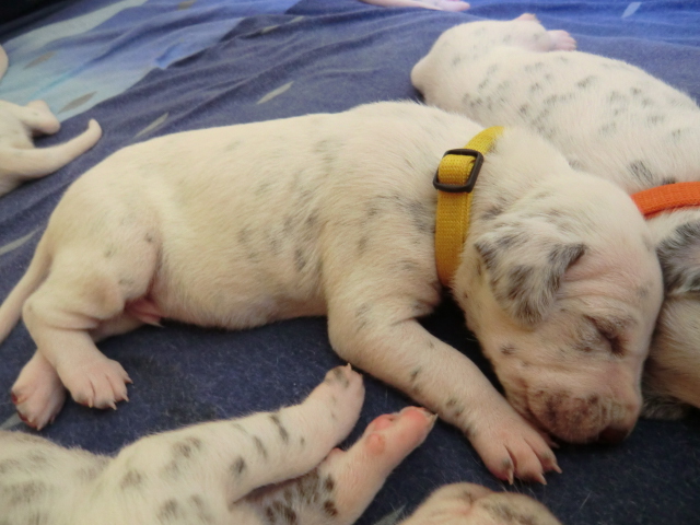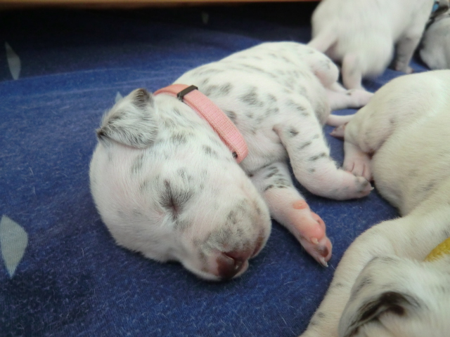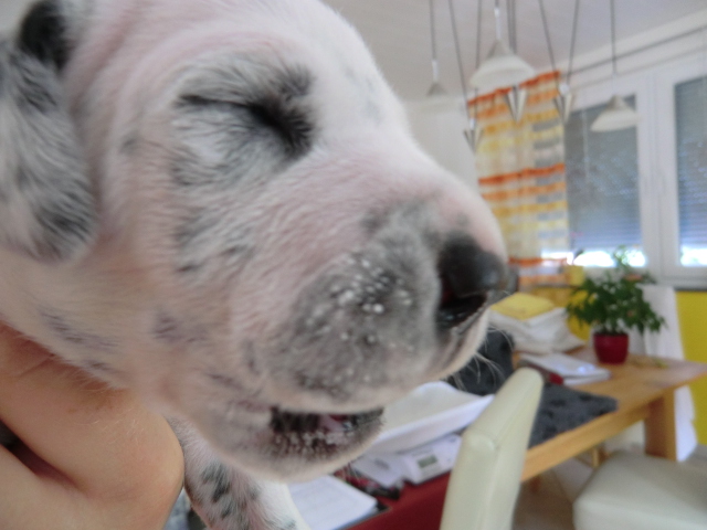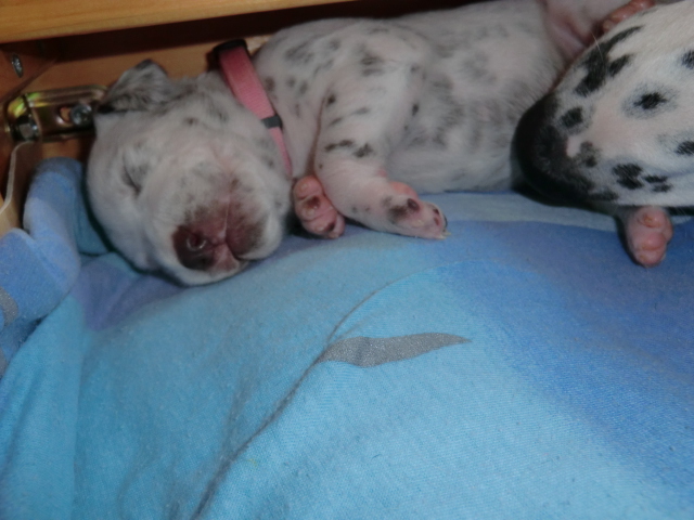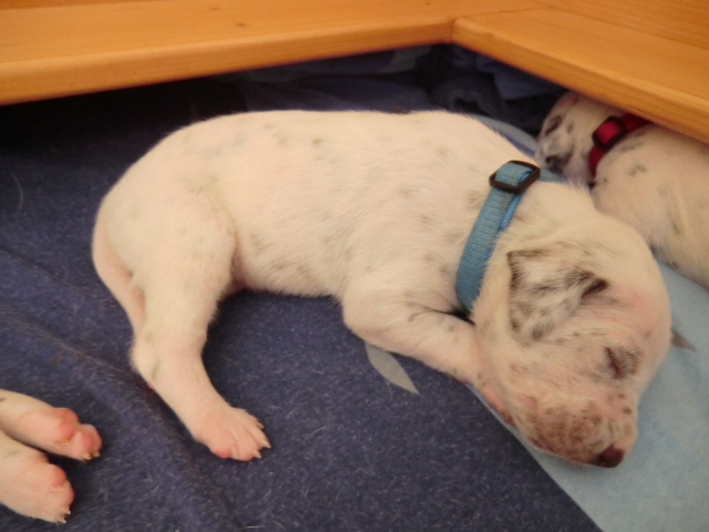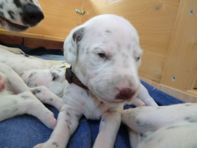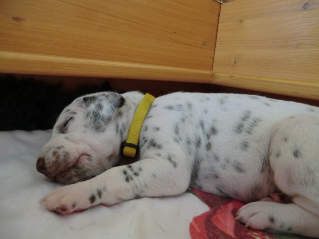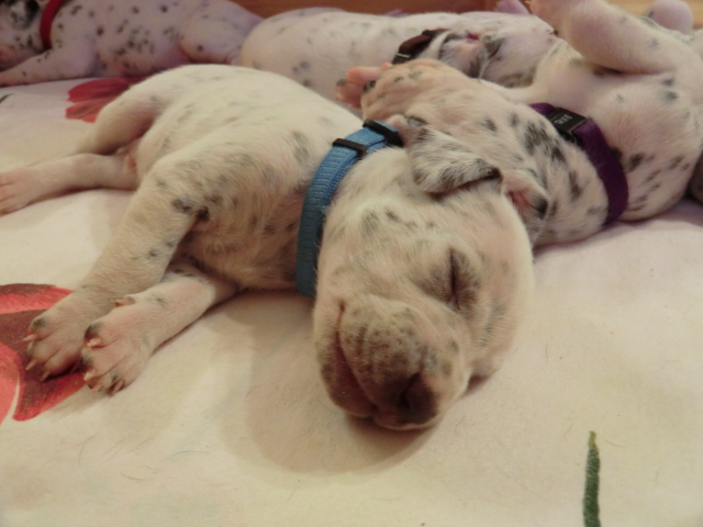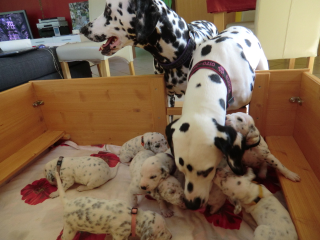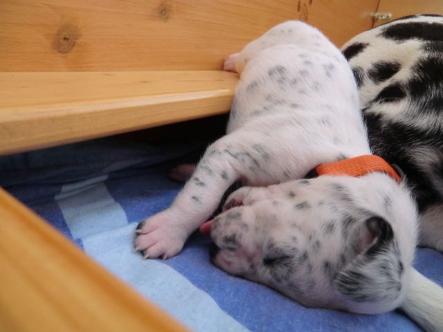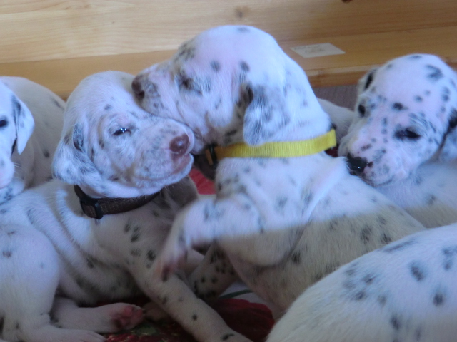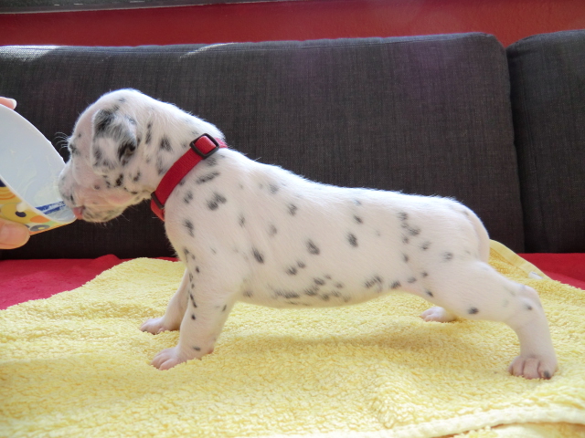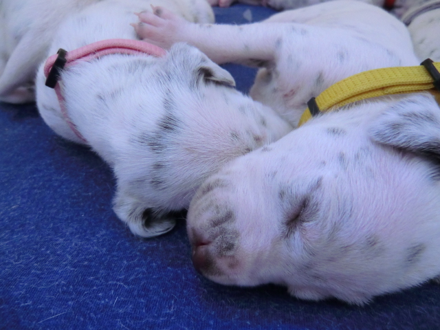 Mit der Entwicklung der kleinen bin ich absolut zufrieden! Mittlerweile sehen sie schon aus wie richtige (Mini) Dalmatiner! Auch werden schon die ersten Geschäfte eigenständig und ohne Mamas Hilfe verrichtet. Waschmaschine und Trockner laufen zur Zeit um die Wette ;-)