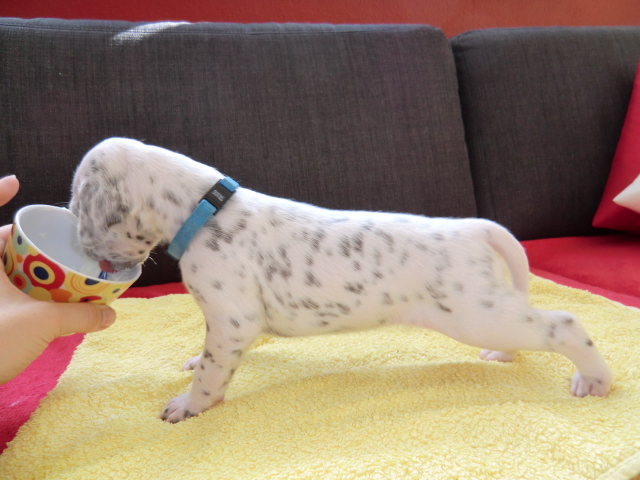 Heute hatte unser Herr Blau Besuch von seiner neuen Familie. Ein Name stand schnell fest: "Emil" soll er einmal heißen und so wurde aus Herr Blau jetzt "Amico mio Emil" übersetzt bedeutet es "mein Freund Emil" ! Ein schöner Name für einen ganz besonders hübschen Dalmirüden! Er wird einmal als Pferdebegleithund ein Leben führen wie man es sich für einen Dalmatiner nur wünschen kann!